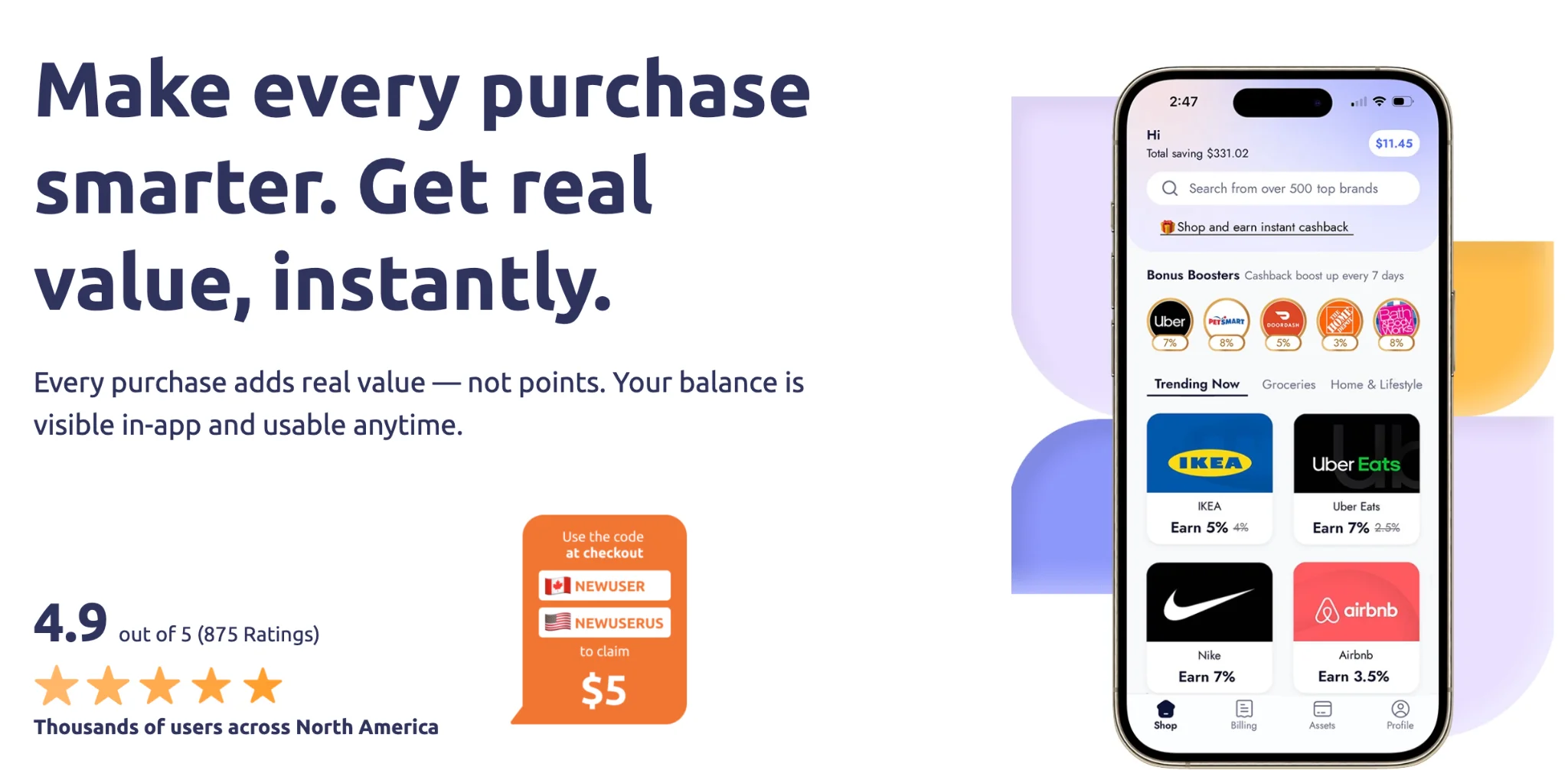 A high-performance cashback platform should cover a wide range of essential services. Snaplii partners with over 500+ brand partners across various industries in the North American market. This ensures that users can earn rewards on a variety of different shopping trips.